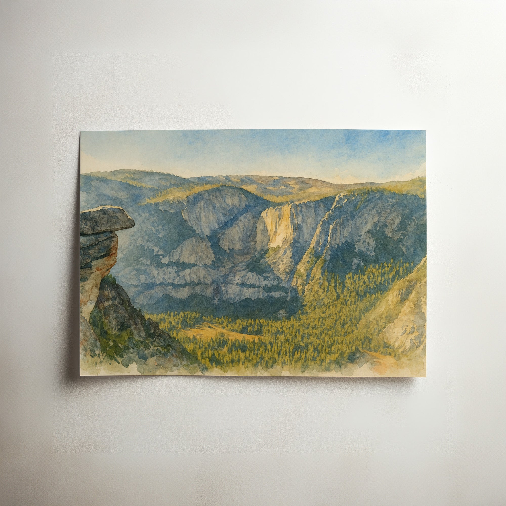 Bring the spirit of nature into your space with this fine art watercolor rendering, inspired by the breathtaking beauty of our world’s most serene and awe-inspiring landscapes. Whether hung in a cozy cabin, modern apartment, or welcoming entryway, this print adds a tranquil and elegant touch to any wall.